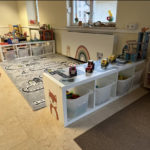 Kreativität: Bauteppich für kleine Baumeister und Basteltische für erste Kunstwerke.
